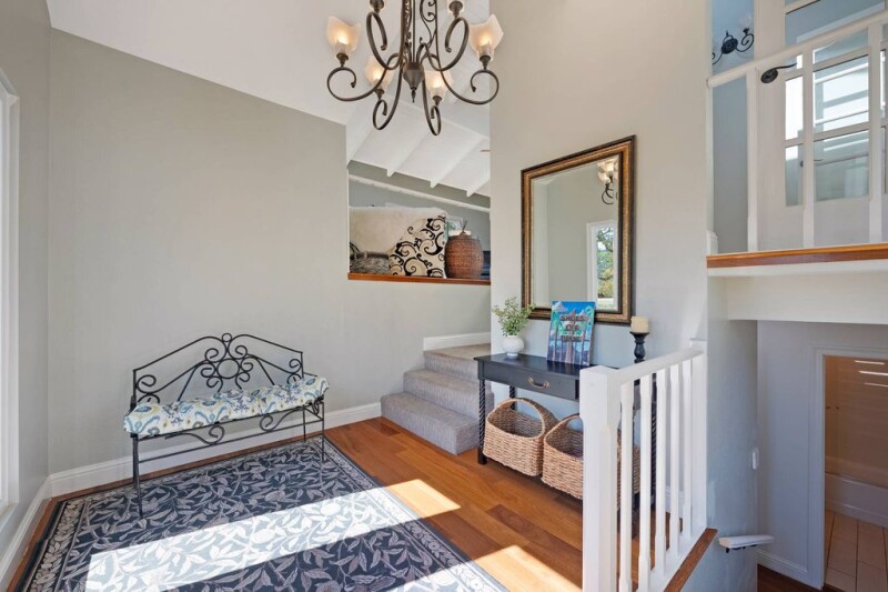 This meticulously updated multi-level home boasts breathtaking views of Bennett Valley and the surrounding landscape. The lower level features three generously sized bedrooms, with two fully updated bathrooms and ample storage space. Additionally, it provides access to a three-car garage with an EV charging station just outside the garage door. The main level is highlighted by its exquisite kitchen, featuring high-end appliances and motion-sensor lighting that illuminates the evening floors. A spacious storage pantry and large windows offer panoramic views of the native flora and fauna. The breakfast bar serves as a seamless transition between the kitchen and the formal dining room, while the living room boasts expansive picture windows that provide a vista of the distant horizon. The upstairs loft is bathed in natural light and features an adjacent, generously sized bedroom. The loft also provides access to a private deck overlooking the fenced raised beds and the majestic heritage oak trees. Hiking trails are located at the end of the street too.