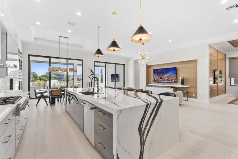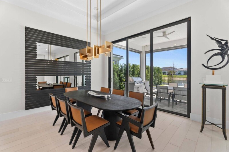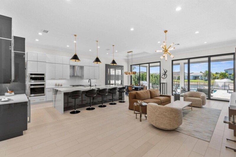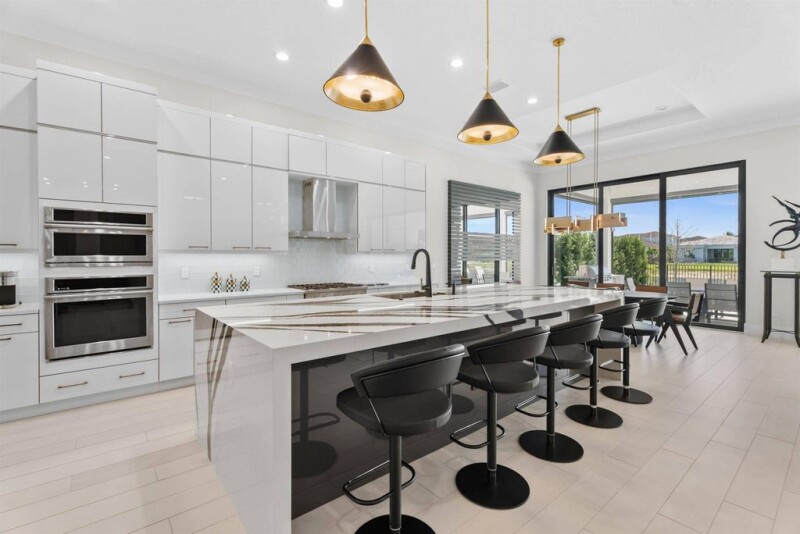 This stunning home is the largest single-story model in Artistry and is situated on a premium homesite with southern exposure and direct lake & fountain views! This impeccable home was just built and enhanced with over $500,000 of luxurious features! This 3 bedroom 3.1 bathroom home was designed to unwind and entertain. The swanky clubroom adds to the expansive space, and can also be a 4th bedroom. The gourmet kitchen features elevated cabinets, Monogram appliances with gas cooktop, 48'' refrigerator, quartz countertops & island with waterfall, and a dry bar complete w/ a wine cooler & ice maker. The primary bedroom & bathroom are a serene retreat with stylish lighting fixtures, a soaking tub, frameless shower, and a Toto bidet toilet. All closets are custom built by California Closets.