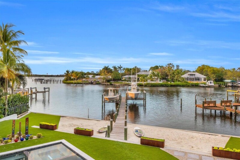Commercial RE Broker's private home. Welcome to your private waterfront retreat, where modern luxury meets serene coastal living. The home was completely renovated in 2022, rebuilt upgrades to the two master suites. Floor-to-ceiling windows fill the space with natural light to view backyard and waterfront view. The open-concept design connects the gourmet kitchen, living areas, and outdoor spaces, perfect for relaxation and entertaining. High-end finishes and appliances throughout. 98' feet of waterfront access, two boat lifts. The primary suite features a water view balcony and luxury bath. Located at the mouth of Poppleton Creek, 2 Boat lifts; 30,000 and 7,000lb,100' dock, Impact Glass Windows, Built in Garage Cabinetry, 1/2 acre+ estate lot, Circular Driveway.