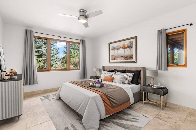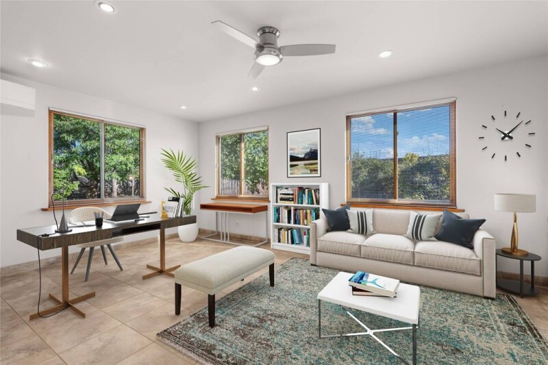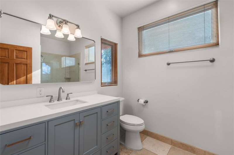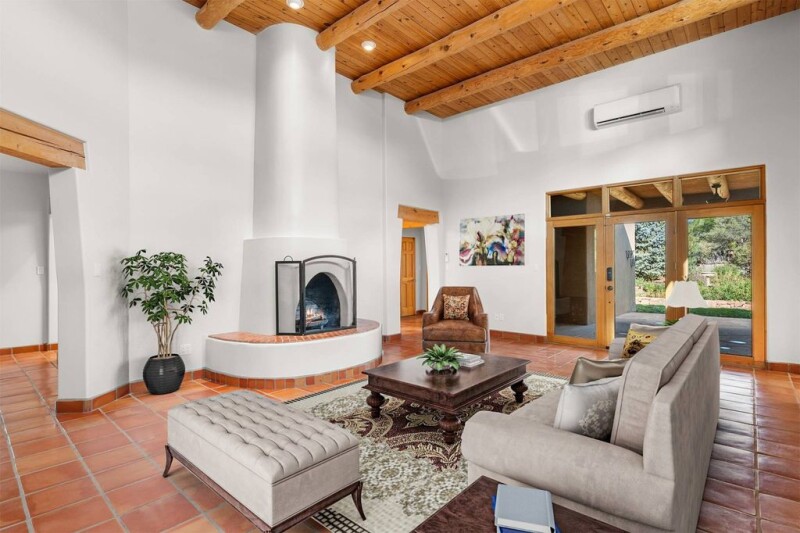 Tucked away off a serene cul-de-sac, this entirely single level, meticulous Santa Fe style home must be seen! Located on the city's lower east side near the medical district and St. Michael's High School, everything you need is a short drive away. The home is situated on a huge, beautifully landscaped lot with a peak of mountain views. For the enjoyment of your private sanctuary, there is a 455 sq. ft. portal with vigas and wood decking above and flagstone flooring below that is a true extension of your living space with Santa Fe's delightful climate many months of the year. The home is immaculate and offers incredible flexibility with a spacious studio or office addition. With a private entrance, this light and airy room with a multitude of windows could also function as a mother-in-law suite with a beautiful bathroom nearby featuring a walk-in shower. The living room boasts soaring ceilings with vigas and wood ceiling and an amazing kiva fireplace that commands attention. The primary bedroom is private and spacious and the remodeled bath with a gorgeous shower and huge walk-in closet will not disappoint. The home also features three other bedrooms with beautifully renovated guest bath. The kitchen is lovely with quartz counter tops and high end stainless steel appliances and more than sufficient storage for all your culinary needs. For your dining requirements, the home offers a charming breakfast nook replete with windows bringing the lovely outdoors in as well as a more formal dining space. There is a fabulous laundry room with cabinets, built in sink, and a window to the backyard. The home also features 7 nearly new mini-splits which offer both heating and cooling for year round comfort and a two car attached garage. This home is truly a gem! If you are seeking a home full of Santa Fe charm, character, and thoughtful upgrades- all in a prime location that allows for privacy and convenience, this property is not to be missed!.