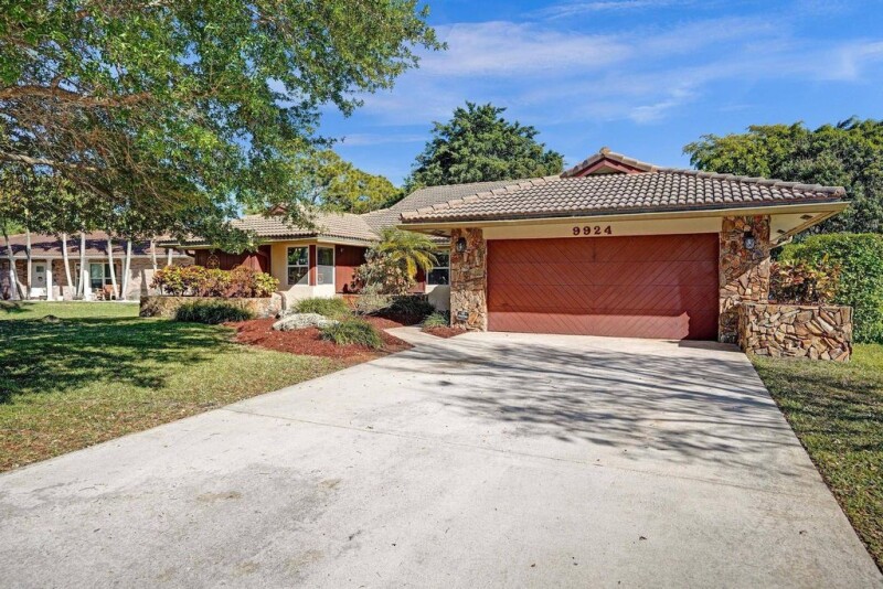 Beautiful 4-Bedroom Pool Home in Oakwood Community of Coral Springs Spacious 4 bed, 2.5 bath home with wood floors in main living areas. Remodeled kitchen with stainless steel appliances, double oven, granite counters, soft-close drawers, and bay window breakfast nook. Spacious family room, formal dining with built-in cabinets, and custom bar with shelving. Primary suite with sitting area, walk-in closet with built-ins, and luxurious bath featuring dual sinks, granite, rainforest shower, and Roman tub. Remodeled guest bath with dual sinks, granite, rainforest shower, and custom glass door. Updated half bath with custom cabinetry and granite. Amazing backyard for entertaining! Fenced yard with storage shed, covered pergola with pool table, and plenty of seating.