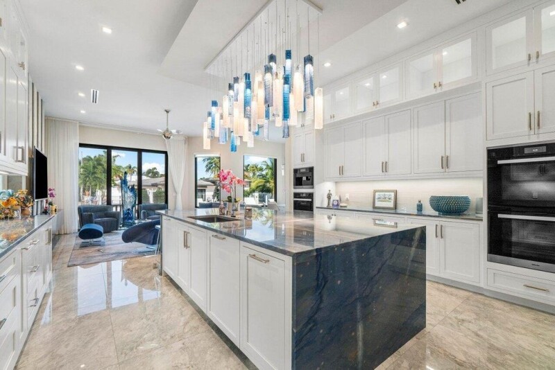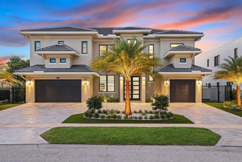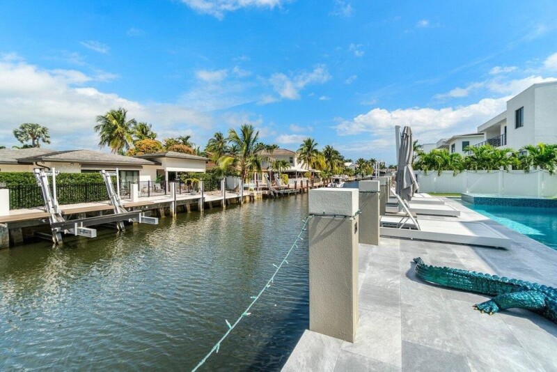 Built in 2022, this new waterfront residence defines luxury living w/ the finest materials & cutting-edge design. Expansive impact glass enhances security and style, while a whole-house generator and private elevator provide convenience. The striking interior boasts custom floating stairs, wide plank French Oak and porcelain flooring, and ultra-premium finishes. The chef's kitchen features top-tier Miele appliances, a Sub-Zero wine unit, two dishwashers, and a fully equipped outdoor kitchen. The primary suite's spa-inspired bath has a freestanding tub, oversized shower, and dual water closets. Outside, a 40x14 resort-style pool with a Champagne spa overlooks the new seawall, offering direct access to open water with no fixed bridges. Perfect for the quintessential boater!.