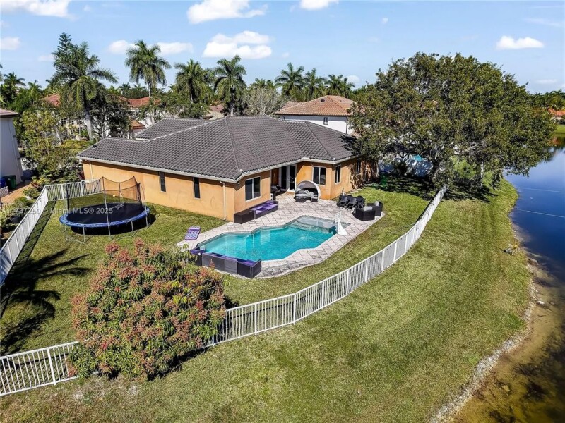 Well-maintained single-family home located in the Windsor Palms gated community neighborhood. Built in 2001, the residence offers 5 bedrooms and 3 bathrooms within approximately 3,026 square feet of living space. The home features a split bedroom floor plan, formal dining and living areas, an office space, and a private pool with a water view. The roof is three years old. Home is it equipped with all impact windows and doors?.