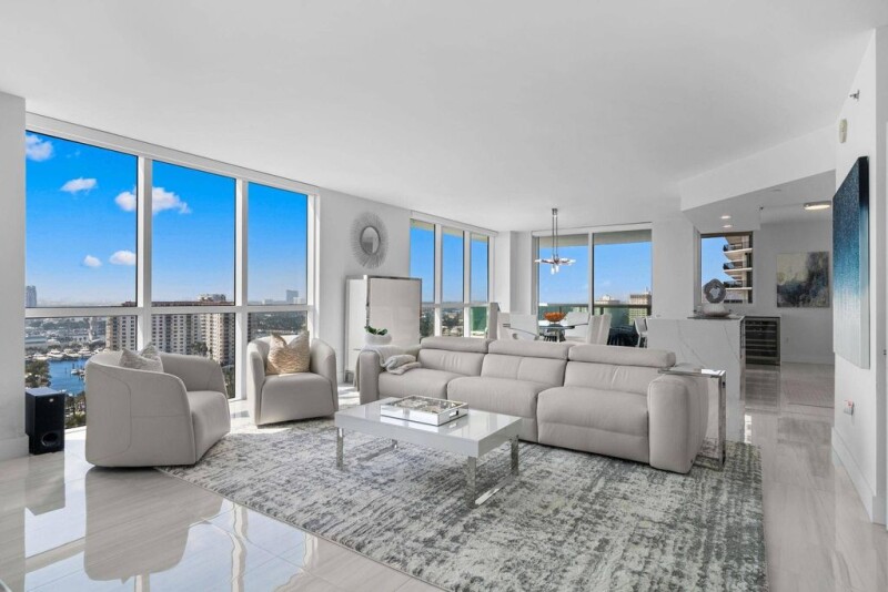 FULLY REMODELED, stunning 2 Bed/2 Bath Residence! From the moment you enter, you'll be immersed in an atmosphere of elegance, surrounded by a sophisticated design that blends modern luxury with timeless appeal. The home features a tasteful palette of neutral colors & is complemented by exquisite finishes! The Open Kitchen has been thoughtfully customized for modern living, creating the perfect balance of style & functionality. As you step into your private elevator foyer, you're welcomed by an expansive open floor plan, bathed in natural light from high-impact glass windows that frame breathtaking views of the Ocean & vibrant City Skyline. Imagine waking up to the beauty of both Sunrise & Sunset every day from this coveted SW corner unit! Don’t miss your chance to own a piece of paradise!.