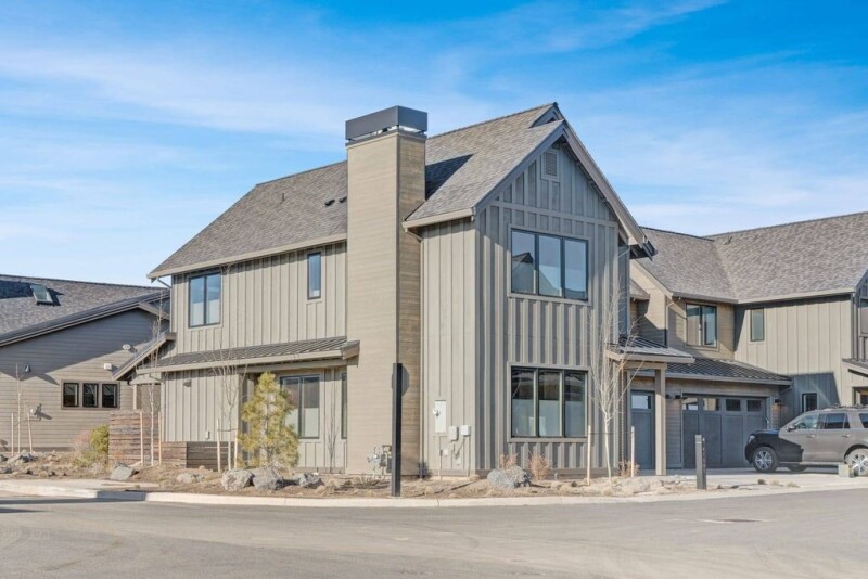 Tired of maintaining a large home but not ready to sacrifice luxury and convenience at Tetherow? This stylish Pine floor plan offers the perfect solution. Nearly new, it includes Hunter Douglas blinds, a washer/dryer, and a 2-car garage with space for outdoor gear. The kitchen, with a walk-in pantry, large island, and counter seating, connects seamlessly to the bright and spacious living and dining areas and overlooks the back patio. Upstairs features a total of three bedrooms, including a primary suite with vaulted ceilings, two secondary bedrooms, a full bath, and a bonus room that provides unlimited flexibility and could be a media room, gym, office or 4th bedroom. The west-facing patio is perfect for unwinding, with hookups for a hot tub or fire-pit and plenty of room for dining or lounging. Enjoy trails, pools, fitness, dining, and golf right at your doorstep for unmatched recreation and relaxation.