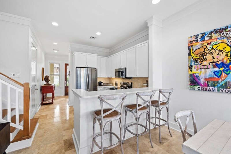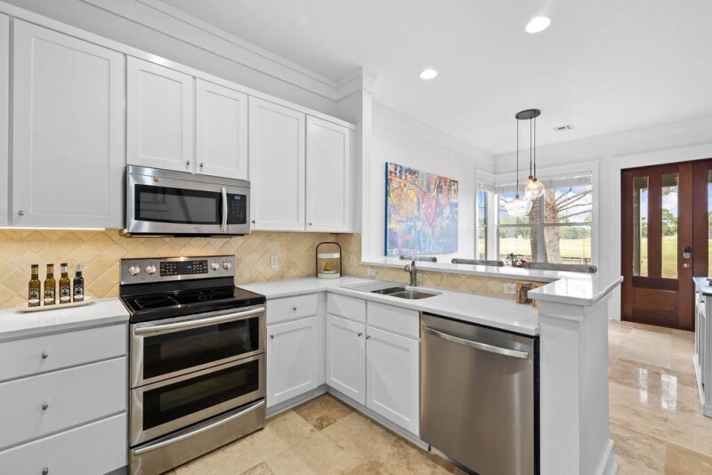 Relax and enjoy a slower pace of life at this stunning two-bed, two-and-a-half-bath townhome at Magnolia Bay in Sandestin Golf & Beach Resort. Located in a natural setting with panoramic views of the golf course, it overlooks a stocked fishing pond that provides endless opportunities for bird-spotting. Refinished travertine flooring adds prestige to the first floor, along with a half bathroom. Once inside, your eye is immediately drawn through the open living room to the views of the rolling fairway of Baytowne Golf Course. In the immediate foreground, there’s a tranquil nature pond with mature trees. The upgraded kitchen has a full range of stainless steel appliances to please any creative cook and a butler’s pantry provides additional storage. A half-height wall is topped with a matching quartz countertop, creating a neat bar for serving drinks or casual meals. The light and airy floor plan widens further to incorporate a dining area and a spacious sitting area, both with jaw-dropping views through dual-aspect windows. Mahogany French doors open onto a private porch with space for a dining table and lounge chairs. It’s a fantastic place to relax and enjoy the lush views and the sights and sounds of nature. Head upstairs to the second floor, where new LVP flooring enhances the entire space. The primary suite has a king-sized bed, dual closets, and elevated views of the stunning landscape from two directions. The adjoining bathroom has a large soaking tub, a dual vanity and a separate shower featuring dreamy travertine tile. There’s a laundry closet with a stacked washer and dryer on the landing. The guest bedroom is equally well-proportioned to accommodate two full-sized beds and a closet. A second bathroom on this level has a shower/tub combo. The home includes a one-car garage and a Sonos sound system, allowing you to enjoy your favorite music wherever you find yourself. This beautiful home is a place to relax and enjoy a slower pace of life. Picture yourself sitting on the back porch and watching the sunrise, with views over the tee box. The stocked fish pond will provide hours of entertainment with visits from numerous species of birds and other wildlife. This home is ideally located within walking distance of the neighborhood pool, Sandestin Tennis Center, Baytowne Wharf and the marina. Enjoy a leisurely lunch or dinner at a waterfront restaurant, watching boats come and go, or try your hand at kayaking and stand-up paddleboarding. Spread over 2,400 acres, Sandestin is known for its incredible amenities, including four golf courses, excellent shopping, live entertainment and a courtesy tram service to the beach.