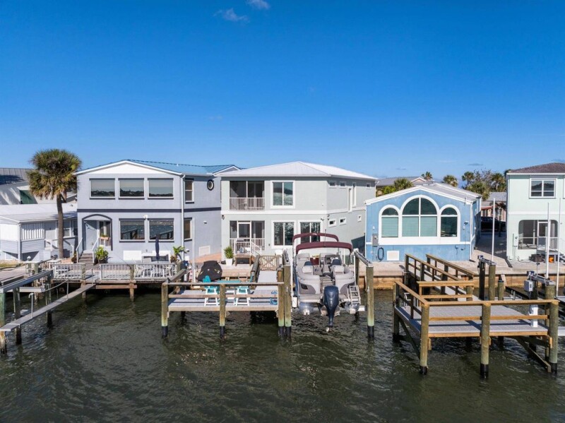Claim your slice of paradise with this custom-built riverfront home offering the perfect blend of river-to-ocean living. This exceptional 3-bedroom, 2-bath home features a first-floor living and dining area with a fully equipped kitchen, custom cabinetry, stainless appliances, quartz countertops, tile backsplash, luxury plank flooring, and a tankless water heater. A screened porch off the dining area is perfect for watching breathtaking sunsets. All bedrooms are on the second floor, with the master suite boasting a screened balcony. Built in 2022 with CBS construction, impact windows and doors, and 1,766 sq. ft. of living space, this home also includes exterior storage for beach gear and fishing rods. Nettles Island residents enjoy fantastic amenities!.