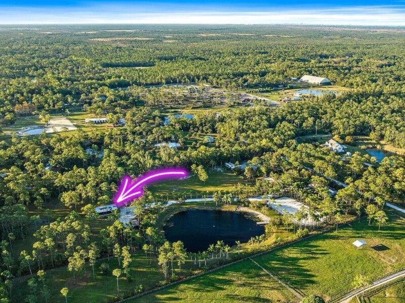 CREATIVE SELLER FINANCING AVAILABLE! Nestled on over 10 acres in the exclusive community of Wind in the Pines, this hidden gem offers a unique opportunity in Palm Beach County. Conveniently located off of PGA Boulevard, this gorgeous estate boasts no HOA and an expansive property that provides a serene and private feel that is so highly sought after. This property delivers endless possibilities, whether it be a private residence with an abundance of land, or an equestrian haven. Highlights include a private sandy beach with a 50-foot dock and a charming boathouse, as well as a fully stocked lake for fishing.The equestrian facilities are exceptional, featuring two barns with eight stalls, a dressage ring, an exercise area, and four large fenced paddocks.