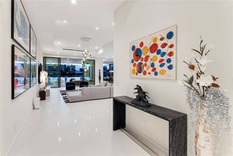 Modern Intracoastal Estate fronts 75’ on the Intracoastal waterway, capturing scenic water views from nearly every major room. This exquisite estate built by Z Construction boasts sleek modern interiors with single-level living featuring 3 bedrooms, 3 full bathrooms & 1 half bath. Soaring ceilings welcome you into a space refined with porcelain floors and custom finishes throughout. This showcase property features a chef’s kitchen equipped with state-of-the-art appliances and an oversized island. Additional amenities include wine cellar, Creston control system, generator, office, 2 bay garage, metal roof & more. Outdoor entertaining is enjoyed at the resort-style heated pool & covered loggia with summer kitchen. Ideal for boating enthusiasts with 60’ concrete dock minutes to Ocean Access.