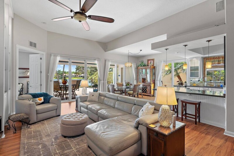 Welcome to 1286 Southwest Eagleglen Place, a stunning waterfront retreat nestled in the heart of Stuart, FL. This inviting 3-bedroom, 3-bathroom home spans 2,000 square feet, offering a harmonious blend of comfort and luxury. As you step inside, you're greeted by a welcoming foyer that leads into a spacious living area with serene lake views. The open layout is enhanced by LVP flooring creating a warm and inviting atmosphere. The well-appointed open kitchen features modern appliances, with granite counter tops and ample storage space in the pantry for all your culinary needs.