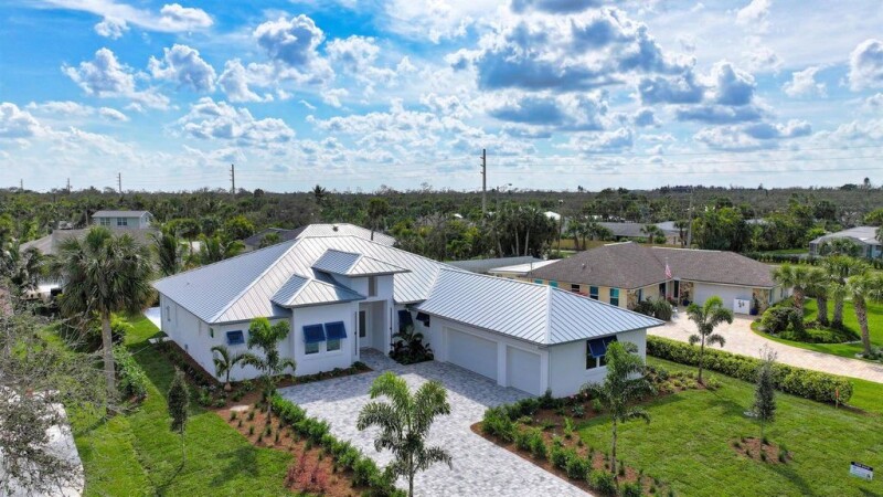 Brand new construction east of A1A just a block from the beach. This custom 3-bed, 3-bath pool home w/ den/office has been thoughtfully crafted featuring an open-concept floor plan, high-end finishes, & impact windows & doors. The gourmet kitchen features quartz counters, custom cabinetry, & SS Cafe appliances. Enjoy the private retreat primary suite w/spa-like bath. The covered lanai & sparkling pool is ideal for year-round relaxation. Additional features include wine bar, butlers pantry, shiplap ceiling detail, 500 gallon propane tank. Conveniently located near beaches, shopping & dining!.