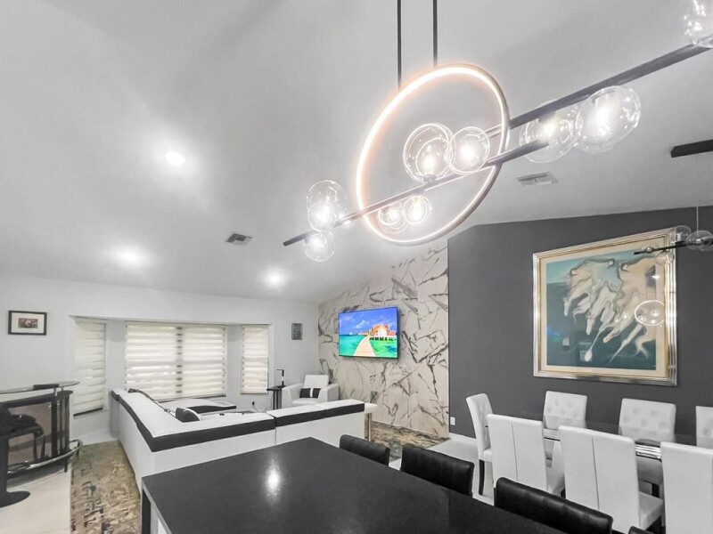 Discover the allure of this stunning just remodel 5/3 home , boasting the picturesque water view you've been longing for! Step into a residence where the master suite, dining room, and kitchen seamlessly connect to the expansive covered and screened pool/patio area, creating a perfect setting for memorable gatherings with family and friends. Indulge in the master suite's amenities, featuring a spacious soaker tub, a separate shower, and a generous walk-in closet, providing a luxurious retreat. The well-appointed kitchen showcases granite countertops, modern appliances, and an open layout to the family room.Enjoy the outdoors with heated pool, providing year-round comfort. ARBNB income.