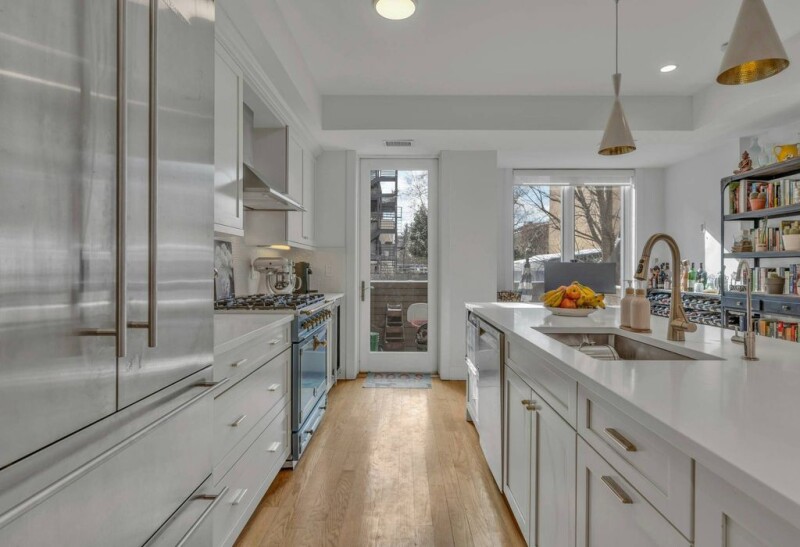 Welcome home to the Brownstone of your dreams, where classic charm meets modern luxury in this custom residence. Fully reimagined and redesigned by Minervini & Vandermark in 2015 with brand-new plumbing, separate gas heating, and updated wiring. Located just off Washington Street with easy access to transportation to NYC, shopping, restaurants and parks. This urban oasis offers a 3-bedroom, 2.5-bath owner’s triplex plus a separate 2-bedroom apartment—ideal for extended family living, combining both units or keeping for rental income. Step inside to an exquisite chef’s kitchen, featuring a La Cornue gas stove, Liebherr refrigerator, wine fridge, high-end stainless steel appliances, quartz countertops, and a generous island. The space flows seamlessly into a private landscaped yard and a lovely living room with high ceilings and a marble fireplace mantle. Upstairs, the second floor boasts two ample bedrooms, a well-appointed bath, and a sunlit terrace with southern exposure. The top floor primary bedroom features another marble fireplace mantle, accented skylights, an extraordinary custom walk-in closet, and a luxurious frameless glass spa-like shower with double sinks. All bathrooms showcase European vanities and Porcelanosa tile, plus California Closets are found throughout for abundant storage. Experience modern comfort and timeless design in this perfectly located Hoboken gem.