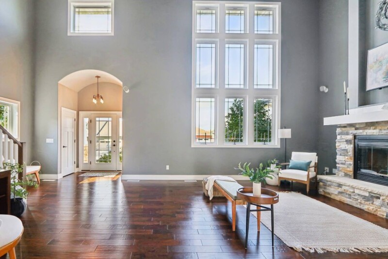 The epitome of modern elegance, this stunning home is located minutes between Verona and Madison's west side, surrounded by endless options for dining, golfing, shopping, and more. As you enter the great room, you'll be welcomed by an open floor plan highlighted by soaring coffered ceilings and bamboo floors. Elegant arches guide you into a spacious kitchen, showcasing a grand island perfect for culinary creations and conversations, and a generous dining area with egress to a paver patio complete with fireplace. The main level also features a large mudroom and an office/guest bedroom. Retreat to the primary suite, where relaxation abounds with an oversized soaking tub, a rejuvenating shower, and an expansive walk-in closet. Venture down to the finished lower level, designed with additional living and entertaining in mind.