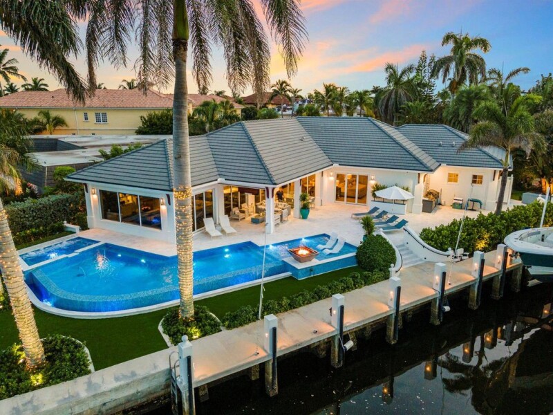 SPECTACULAR CUSTOM BUILT INTRACOASTAL POINT LOT WITH 200 FEET OF SEAWALL AND A NEW 2023 - 100 FOOT POURED CONCRETE DOCK W/ 40,000 LBS BOAT LIFT, SEAWALL RAISED 19'' TO NEW CODE. JUST MINUTES TO THE BEACH AND ATLANTIC AVENUE. THIS 3 BR 3.5 BA W/ DEN WAS BUILT WITH THE FINEST FINISHES AND MATERIALS, MARBLE FLOORS, WOOD FLOORS, CUSTOM MILLWORK THROUGHOUT, GOURMET CHEF'S KITCHEN W/ THERMADOR APPLIANCES, SUB ZERO REFRIGERATOR, WINE COOLER & ICE MAKER, A SALT WATER INFINITI EDGE POOL W/ SUN SHELF AND SPA, W/ FIRE WATER FEATURE, ALL POOL EQUIPMENT WAS INSTALLED IN 2023/24 (POOL HEATER, CHILLER, FILTERS), SUMMER KITCHEN. NEW MARBLE PATIO DECK & POOL TILE, BUILT IN PATIO CEILING DROP DOWN 60 INCH TV, WHOLE HOUSE CRESTRON SURROUND SOUND SYSTEM, NEW 2024 GENERATOR, COFFERED CEILING IN FAMILY ROOM W/.