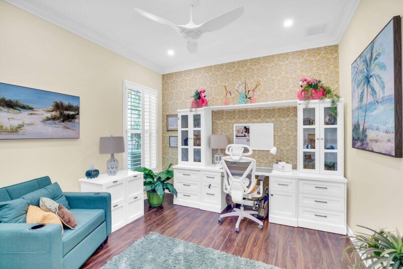 Standout home in Isles of Waterway Village, a DiVosta built, active resort community! $70k of improvements since May 2024. This desirable Oakmont model has 3 beds, 3 baths, den, and private, screened-in pool. Living room built-ins, soaring 10 and 12 ft ceilings for spacious feel. upgrades and modernization include, crown molding, painting, garage floor epoxy, window coverings, ceiling fans, 24 LED recessed lights, appliances, knobs/hardware, cabinetry, door hardware, new elevated toilets, shower heads, valves, skylights, entire house surge protector, central vac, built-in safe, pool heater, water tank, pool filter holder, pool pump. HOA fees include exterior landscaping, mulching, fertilizing, plant replacements, irrigation, cable/high speed internet, home security system.