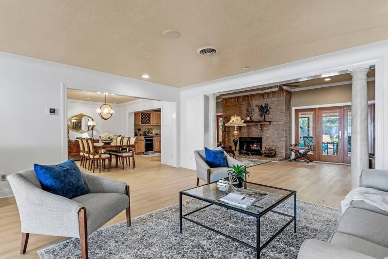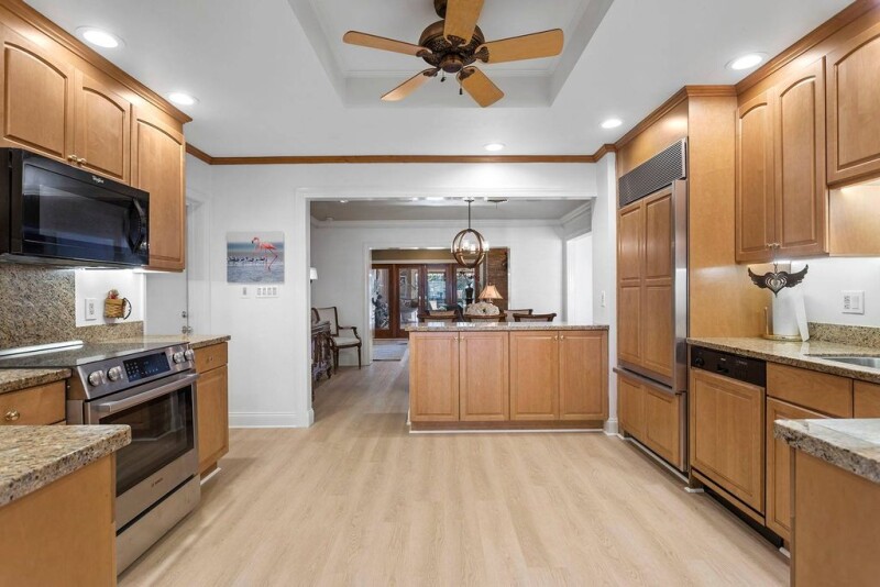 This stunning 4-bedroom, 3.5-bathroom custom ranch-style home offers timeless elegance and modern updates. Highlights include cove and crown molding, three charming fireplaces, a bright and inviting morning room off the kitchen, and spacious living and family rooms perfect for gatherings. The home features brand-new wood-look luxury vinyl flooring throughout, adding a fresh and stylish touch. One of the many engaging amenities of this home is the bright and airy Florida room with a 14-foot-high custom wood ceiling, built-in propane gas grill with exhaust hood, ceiling fans and automatic windows. This special bonus room overlooks the screened pool, travertine pool deck, spa and lush tropical landscaping. This amazing outdoor living space offers a delightful retreat where you can relax and entertain while enjoying the Florida lifestyle. The huge primary suite offers a private sanctuary featuring a large walk-in closet. The en-suite, spa-like bath boasts dual vanities, walk in shower, tub and water closet. The kitchen features solid wood cabinetry, granite countertops, Bosch dishwasher and Sub-Zero refrigerator freezer. There is a new wine cooler in the family room dry bar. There is an attached two-car garage with storm door, lots of storage, the laundry and a half bath. The large circular driveway allows for plenty of off-street parking. This is a wonderful opportunity to own a beautiful home on desirable Snell Isle which is in the St. Petersburg high school zone, close to downtown St. Pete and beautiful waterfront parks.