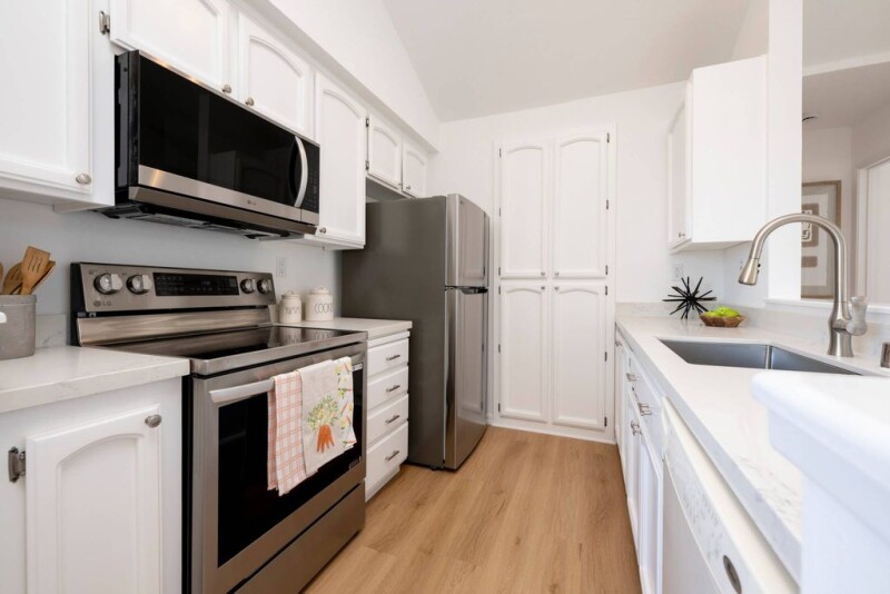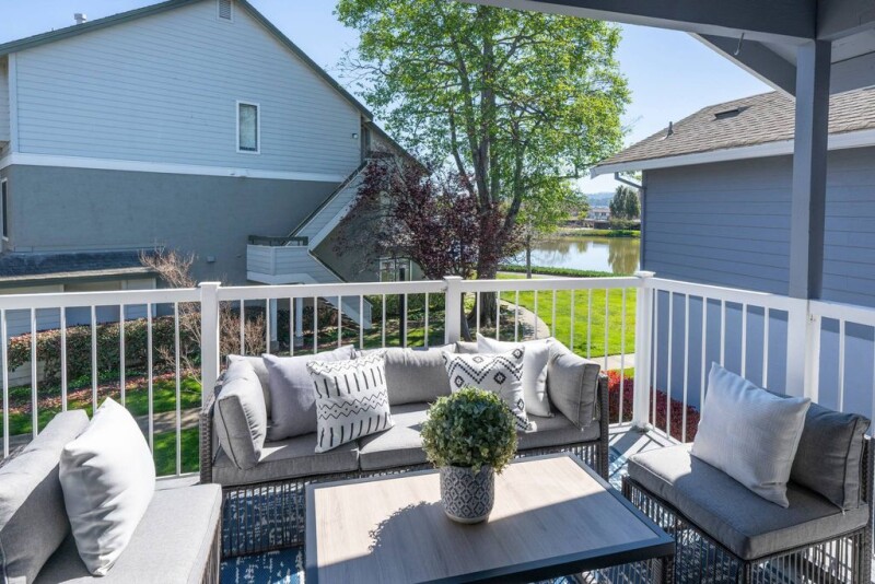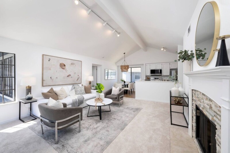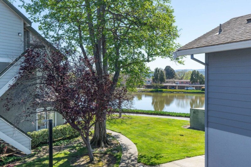 Welcome to 2045 Vista Del Mar that resides in the most sought after location in Edgewater Isle. This luxury condo resides on the second floor and boasts natural light throughout. There are beautiful garden and lagoon views. The two bedroom, two bathroom home has been tastefully updated. The kitchen entails high ceilings, quartz countertops, custom cabinetry, all new stainless steel appliances, and fine finishes throughout. Adjacent is an open concept with a spacious dining/ living room combo with a custom stone gas fireplace. Easily accessible is a private expansive patio, its a perfect area for indoor/ outdoor living. The primary bedroom has an abundant amount of closet space, a separate powder room and an attached bathroom. The secondary bedroom has two closets and an attached full bathroom. This home's features are endless, with cathedral ceilings, an in-unit laundry room, enlarged glass sliders, tons of storage space, and a one car enclosed garage, (an outside designated parking spot too). Also included is a sparkling pool and spa, managed by the HOA. Centrally located to bike and walking paths on the lagoon, close proximity to Bridgepointe Shopping Center, fine dining, public transportation and easy access to 101 and 92. This home has it all!.