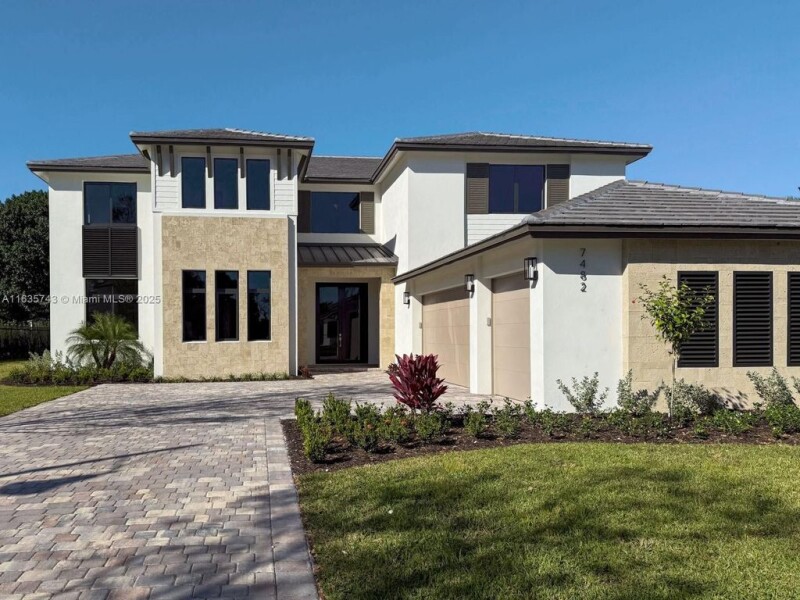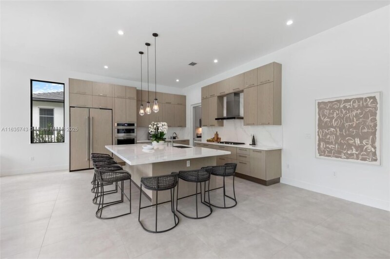 Welcome to the Lantana model in Pine Rockland Estates, a boutique gated community w/ 26 newly built homes. This beautifully appointed home features 7 bedrooms (including gym & office w/optional closets), 6 baths, an expansive covered terr. w/outdoor kitchen, 30-foot saltwater pool w/6 ft. sunshelf & raised spa. Grand kitchen w/ large island, high-end Jenn-Air appliances, gas cooktop, contemporary Italkraft cabinetry & countertops, exterior vented-kitchen hood, secondary prep kitchen, game room, 11 ft. wetbar in loft, primary suite w/2 built out walk-in closets, expansive primary bathrm w/ 2 water closets, freestanding soak tub & spacious shower alcove. Grand staircase w/ elegant wine display at foyer, whole- home solar panel technology system, 2 tankless heaters w/3 a/c units & much more!.