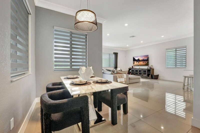 Stunning 5 bedroom 4 bath with state of the art movie theater and modern kitchen with top of the line appliances and quartz countertops. beautiful views from your tropical backyard oasis featuring heated salt water pool gourmet outdoor kitchen with smoker and grill .This smart home features custom closets, spacious primary suite with seating area and impact windows/doors two community clubhouses with a tunnel to enjoy Miralago's clubhouse as well . State of the art resort type club with pools, tennis courts, gyms ,spa, tot lots splash pad indoor bball and may other sports fields to enjoy.