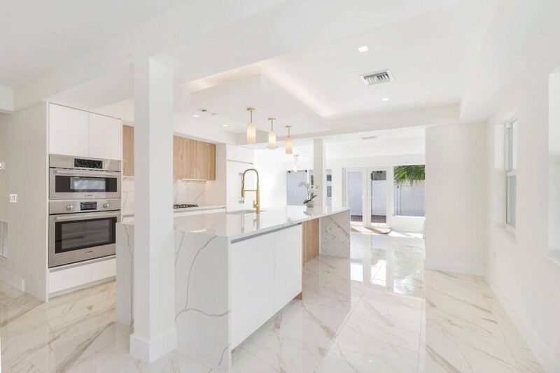 This exquisite home, situated in Prospect Park, offers a 3 bedroom/ 2 bathroom main home with a detached 2 bedroom/ 2 bathroom guest house. Fully renovated and redesigned, this home boasts trendy finishes with an open-concept floor plan and tons of natural light. The 704 sq. ft guest house has its own legal address and is ideal for visitors and/or is a fabulous rental opportunity. The brick courtyard patio is ready for a swimming pool or perfect AS-IS surrounded by mature landscaping. If you desire a few layout edits or specific customizations, the developer is happy to meet your needs. Located close to area beaches, fabulous Worth Ave. shopping, amazing restaurants, Flagler Drive, the Intracoastal waterway and bike trail, City Place and PBI airport.