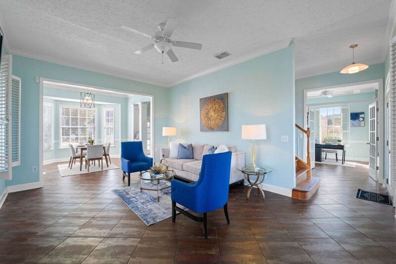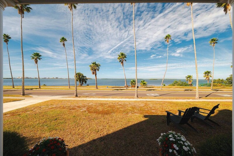 Spectacular sunsets await at this three-story waterfront gem overlooking the intracoastal waterway of St. Joseph's Sound. Just a short distance from downtown Dunedin, the Pinellas Trail, restaurants and shopping, this move-in-ready home built in 1995 offers three bedrooms, 2.5 baths, an office and a versatile 400-plus-square-foot heated flex space ideal for a two-person office, two extra bedrooms with closets, a hobby room or playroom, gym, or media room. The first floor boasts crown molding, 18-inch ceramic tile, a cozy wood-burning fireplace, and a den/office with French door entry. The kitchen shines with beautiful granite countertops, stainless steel appliances and white solid wood cabinetry with glass doors. Off the kitchen is a large indoor laundry room with its private access to the driveway and detached two-car garage. On the second floor, the serene primary suite showcases breathtaking water views, a garden tub, a walk-in shower and an expansive walk-in closet. Two additional bedrooms complete this level. The third floor adds valuable bonus space, offering endless possibilities. On a .38-acre lot, the property features a fenced-in backyard, a two-car detached garage and a deeded dock across the street. Key updates include a seven-year-old roof, 10-year-old air conditioner and a new water heater. Don't miss this opportunity to own a charming, move-in ready, spacious waterfront retreat!.