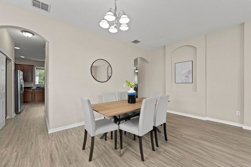 One or more photo(s) has been virtually staged. One or more photos have been virtually staged. Welcome to your private conservation-front home in sought-after Northlake Park community in the heart of Lake Nona with four bedrooms, huge second-floor bonus room, three full and one half baths, open floor plan, new roof December 2024, new paint inside and out December 2024, new water heater tank 2023, new elevator lift for garage racks 2024, storm shutter panels, water softener, new luxury vinyl plank flooring on the first floor 2022, new air conditioner 2017, fully fenced backyard, granite countertop and walk-in closets. Relax at your conservation-facing backyard and enjoy the sight of deer wandering in the backyard conservation land. Northlake Park Community offers A-rated schools, fantastic amenities that include membership to the YMCA, parks, miles of recreational paths, green space, community pool, fitness center, playground and more. Its incredible location allows just minutes from local shopping, dining, entertainment, Medical City hospitals and Orlando International Airport, 20 to 30 minutes to Disney Springs, Disney Parks, downtown Orlando, Universal Studios and Celebration, and 45 minutes to the closest beach at Cape Canaveral and Kennedy Space Center. The house sits on a premium lot with an extra-large front yard with room between the houses. The seller has upgraded the stairs, bonus room upstairs, and hallway to lux vinyl flooring.