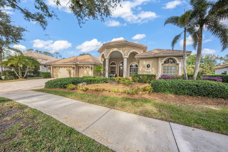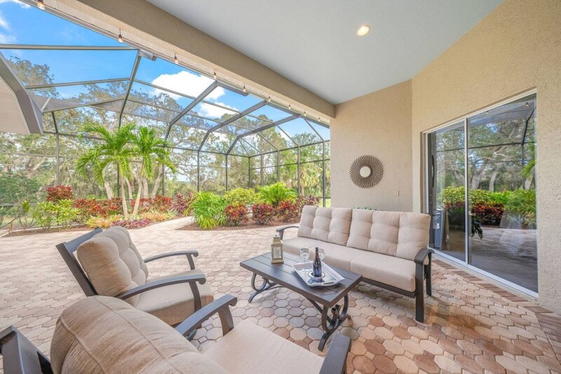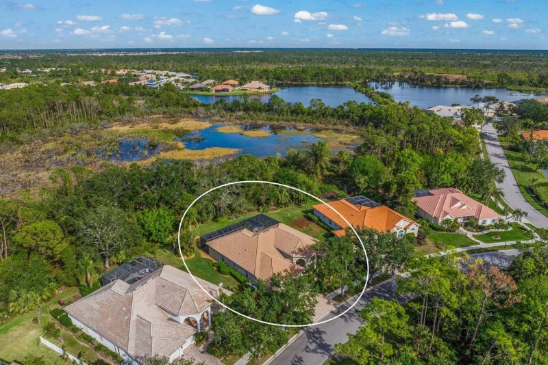 Brand New Tile Roof March 2025. Experience the ultimate in serene living within the picturesque Woodlands of Rivendell, where this stunning residence seamlessly combines the beauty of nature with modern comforts. Bordered by a preserve at the rear and flanked by mature trees across the street, it offers the perfect sanctuary for those seeking tranquility amidst lush greenery. The curb appeal is accentuated by tropical landscaping, a paver driveway and a three-car garage, all leading to a stately arched front patio. Upon entering through the custom artesian etched double doors, you're greeted by an energizing yet tranquil ambiance that defines this unique Lennar Strauss model. Designed with meticulous attention to detail, this spacious home features four bedrooms, three baths and two versatile den/offices, perfect for remote work or quiet study spaces (this area is also ideal for in-law or Au Pair). Expansive layout includes tray ceilings in both the living area and the owner's suite, enhancing the feeling of openness. As you step into the heart of the home, the kitchen impresses with stainless steel appliances, abundant Corian countertops and solid wood cabinetry, complemented by a breakfast bar and informal dining area. The owner's suite is a private retreat complete with a sitting area, coffee bar, patio access and dual closets with custom shelving for optimal organization. The luxurious bath features separated dual sinks, a vanity, a walk-in shower and a relaxing tub. Outdoor living is equally compelling, with an oversized wraparound paver patio that invites you to enjoy the stunning preserve views. The home is designed for seamless indoor-outdoor living, with sliders that pocket away, allowing for a harmonious connection with nature. The serene environment is enriched by a diverse array of birds and wildlife, creating a sense of peaceful coexistence. Practical features include hurricane window protection, an irrigation well and two new air-conditioning units installed around 2022. The location is ideal, situated near top-rated Pine View School, the Legacy Trail, Bay Street Dog Park and an array of shopping, dining and recreational options, including kayaking and boating. With cultural hubs like downtown Sarasota and charming Venice just moments away, as well as access to beautiful Gulf beaches, this home truly offers the best of both worlds. Plus, it's located in a preferred X flood zone with no CDD fees, making it a smart choice for any homeowner.