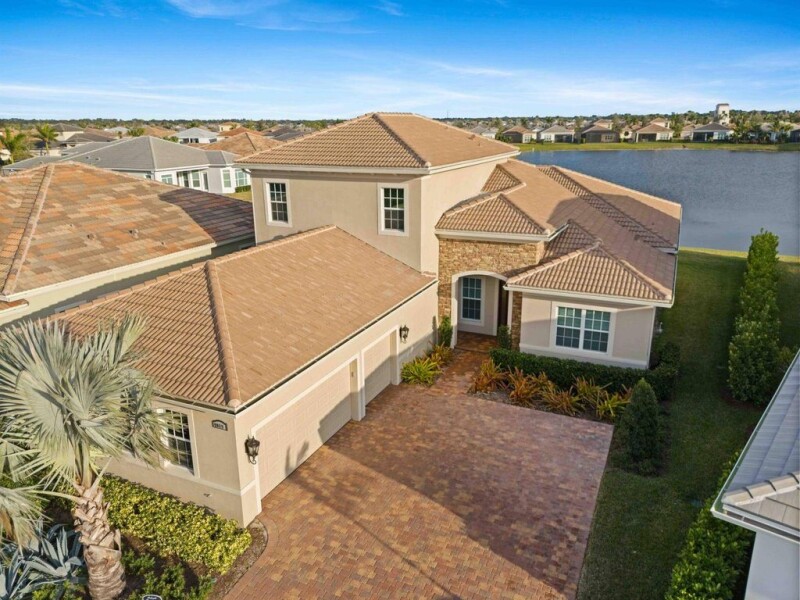 Luxurious Lakefront estate in Verano PGA Village built in 2023. Welcome to your dream home, an exquisite lakefront estate that epitomizes luxury & sophistication featuring the DULCE Model with a Bonus Room, BR & Bath upstairs. Hosts 4 BR's, 4.5 BA's, Den/office & 3 CG in cul-de-sac. Boasting grand entrance, volume ceilings, stunning white porcelain tile flooring, Impact windows & doors, custom window treatments, open Floor plan & natural lighting. Beautiful contemporary design, gourmet eat in kitchen offers style & fresh modern elegance. LG Island, quartz counter tops, Stainless steel appliances, wall oven, cooktop, microwave, pantry & fabulous view. Grand Master Suite, spacious Bath & walk in closet. Split floor plan offer 2 en-suites BR/BA's. Laundry Room includes Washer/Dryer & Sink.