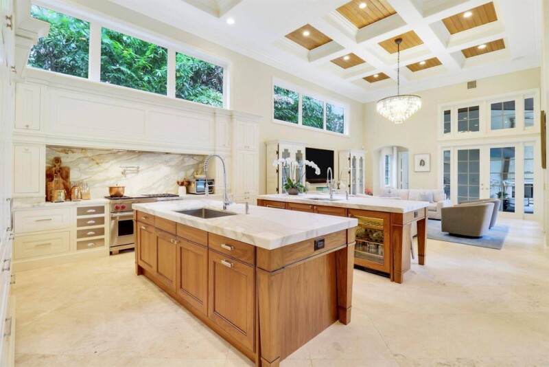 Discover unparalleled luxury in the prestigious enclave of Seminole Landing, where security and privacy meet seaside elegance. Spanning over 6,400 square feet of exquisitely crafted living space, this stunning estate offers a rare blend of comfort and sophistication.Upon arrival, a double gated circular driveway and expansive motor court set the stage for grand entertaining, while a fully air-conditioned 5-car garage ensures safekeeping for your prized vehicles. Step inside to find multiple living areas adorned with marble floors and soaring coffered ceilings, complemented by master crafted wood inlays--a testament to meticulous craftsmanship. The gourmet kitchen features double islands with marble countertops, 60'' Subzero refrigerators, and a.
