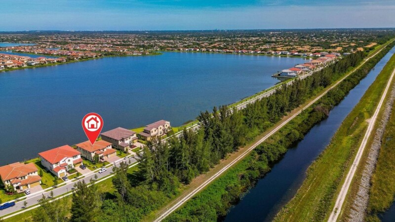 **Priced to Sell**This magnificent two-story Willow model features 5 bedrooms and 5.5 bathrooms, embodying the pinnacle of luxurious living on the largest lake in Parkland. The master suite, three additional bedrooms, and a loft are located upstairs, while an oversized guest suite is conveniently situated on the main floor. The home boasts high ceilings adorned with stunning chandeliers, large hurricane-impact windows that flood the space with natural light, and an open floor plan that enhances the overall sense of space. The upgraded kitchen is equipped with high-end appliances and cabinetry, making it a chef's dream. The spacious lakefront backyard offers a beautiful canvas for a future pool, perfect for outdoor entertaining.