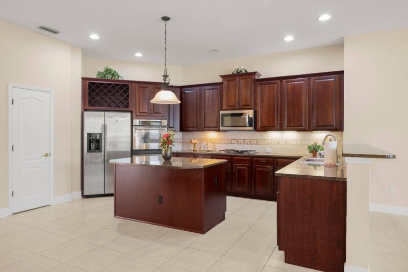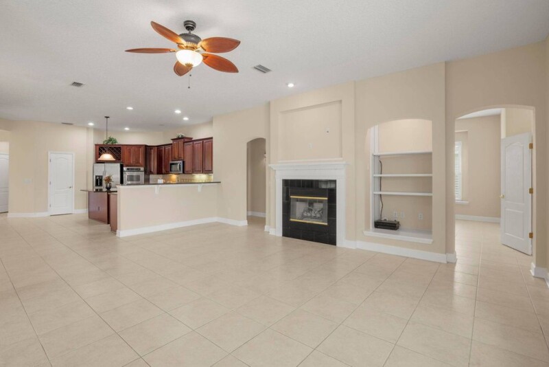 Meticulously maintained, this stunning one-story David Weekley home sits majestically on a serene cul-de-sac, overlooking the lush greens and water of the prestigious St. Johns Golf and Country Club. Boasting a wealth of luxurious amenities and captivating views, this residence offers a lifestyle of unparalleled sophistication. Step inside to discover a thoughtfully designed floor plan, where every detail has been carefully curated to maximize comfort and elegance. The grandeur begins with a welcoming foyer leading to an array of exquisite living spaces, including a versatile office with a closet that can easily double as a fifth bedroom, ideal for accommodating guests or expanding families. Entertain with ease in the formal dining and living rooms, adorned with tasteful finishes and bathed in natural light, or unwind in the tiled family room, featuring a cozy gas fireplace, built-in shelving, and expansive windows offering panoramic vistas of the golf course and sparkling pool beyondA culinary masterpiece awaits in the gourmet kitchen, where gleaming tile floors meet forty two inch stacked cherry cabinets, granite countertops, and a tiled backsplash. Stainless steel appliances, including a gas cooktop and double oven, elevate the cooking experience, while recessed lighting illuminates the space. A convenient walk-in pantry, osmosis water system, breakfast bar, and tiled breakfast room complete this lovely space.Discover additional flex space ideal for a bonus room or media center, perfect for indulging hobbies or hosting gatherings. Retreat to the sumptuous master suite, boasting a bay/bow window, access to the lanai, and a spa-like master bath featuring his and her vanities, a garden tub, and a separate tiled shower.Step outside to your private oasis, where a covered and screened paver lanai beckons for al fresco dining and relaxation alongside the pool, soothing spa, and tranquil fountain. A spacious uncovered paver patio offers prime views of the manicured golf course, providing the perfect backdrop for outdoor entertaining.This home is replete with upgrades and special features, including a glass front door with side panels, upgraded tile with decorative inlay, plantation shutters, custom wood moldings, upgraded lighting fixtures, a second pantry or hall closet, and a convenient Jack and Jill bath between bedrooms three and four.Additional highlights include a half bath with a pedestal sink, a stubbed gas grill on the lanai, an inside remote control for the pool, a tiled laundry room with a sink, and a side-entry three-car garage. Enjoy the convenience of a gas hot water heater, NEW HVACs, a water softener, a full irrigation system, a security system, and landscape lighting.Residents of St. Johns Golf and Country Club enjoy an array of resort-style amenities, including golf, swimming, an exercise room, and tennis courts. With close proximity to shopping, top-rated St. Johns County schools, interstate access, and a short drive to St. Augustine or the beach, this exquisite home offers the epitome of luxurious living in an idyllic setting.