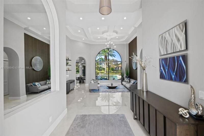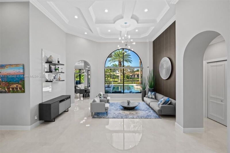 Step into unparalleled luxury in this designer-remodeled, custom waterfront estate on a prime cul-de-sac in the prestigious, guard-gated Hawks Landing. Set on over half an acre, this 5-bed, 6.5-bath masterpiece features high-end finishes, a gourmet chef’s kitchen with quartz countertops, premium appliances, and porcelain flooring that flows seamlessly throughout. All bedrooms are en suite, offering ultimate privacy and convenience. The spacious covered patio is ideal for entertaining, while the new roof, impact windows, and full-house generator ensure peace of mind. Hawks Landing offers world-class amenities, including a $15M clubhouse, Olympic pool, state-of-the-art gym, tennis and pickleball courts, and more, all within a 24/7 guard-gated community. Move-in ready and truly one of a kind!.