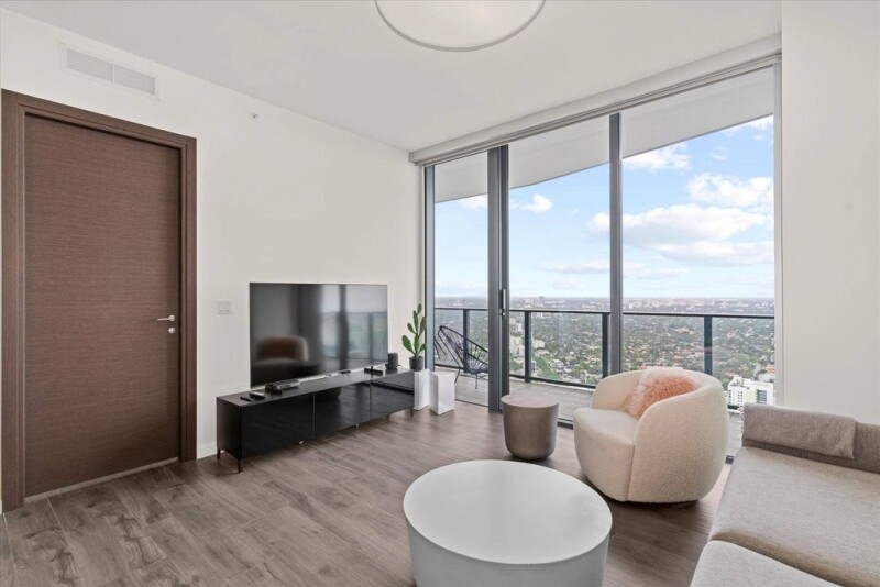 Stunning penthouse with 1,249 ft² (116 m²), offering 2 bedrooms + den, 2.5 baths, an upgraded kitchen, elegant porcelain tile throughout, and electric shades. Enjoy breathtaking southwest sunset views and premium amenities, including a lap pool, lounge, game room, theater on the 18th floor, spa, fitness center, and a rooftop pool deck with 360-degree views from the 64th floor. Experience luxury living at its finest in this exceptional residence.