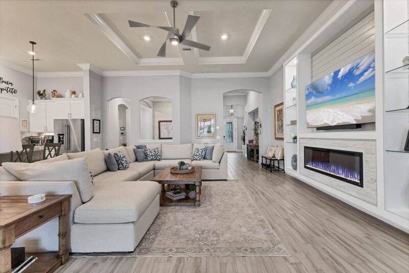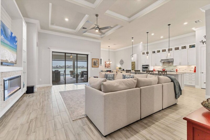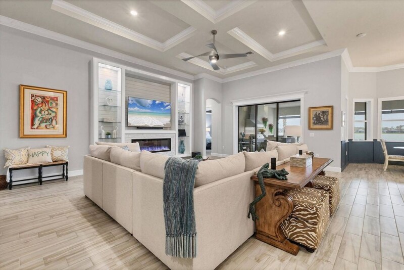 New price on this very special home in Shoreview! This stunning home stands out with many special features, upgrades and a wonderful feel from the moment you walk through the door. The sought-after southwest exposure ensures a beautiful outdoor experience any time of day which allows you to take full advantage of the Florida lifestyle. The front of the home opens to peaceful preserve views and the back to a stunning and expansive view of Middle Teal Lake. Enjoy this private backyard sanctuary from your custom built, luxury saltwater pool and spa with a large sundeck for lounging. Your backyard oasis includes a high-end outdoor kitchen, tropical landscaping, custom water features and firepit table. The inside of this home is just as amazing. The owners spared no expense when updating. They added custom built-ins with beautiful fireplaces in the primary suite and great room. Custom closets and pantry, 7.25-inch crown molding throughout, glass top cabinets, beautiful, decorative molding, shutters and custom stonework on the front of the home as well as decorative garage door with windows. The layout is fantastic with three bedrooms, a den that could convert to a fourth, two full and one half baths inside and dedicated pool bath outside, formal dining room, open office, breakfast nook, wet bar, and a drop zone off garage. It is located ideally within the community and is in close proximity to the amenity center and Waterside Place. This home is a must-see!.
