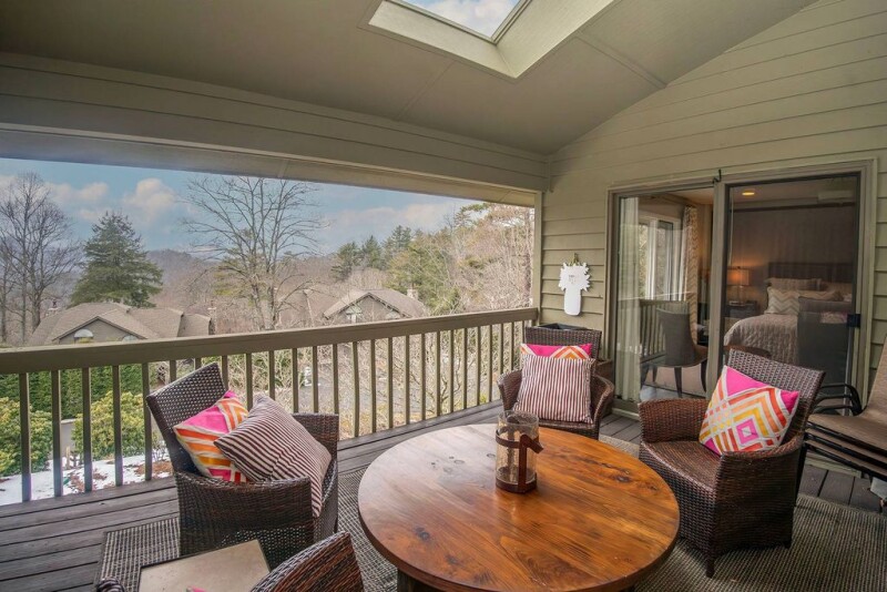 In the sought-after, gated Yonahlossee community, this beautifully updated three-bedroom, three-bath townhome offers a splendid blend of comfort and style. The spacious, open-concept great room features vaulted ceilings and a striking gas-log, floor-to-ceiling stone fireplace, making it the ideal spot to relax and unwind. The updated kitchen is a chef's dream, with modern finishes, stainless steel appliances and plenty of space for meal preparation. The open window to the dining area and great room makes it optimal for hosting and entertaining. Step outside onto the covered back deck, where you'll enjoy stunning views, including seasonal views of the iconic Grandfather Mountain. Whether you're sipping your coffee or enjoying the sunset, the views are sure to impress. The main-level primary suite features a sliding glass door that leads to the deck, a walk-in closet and an en-suite bath. Down the hall is a guest room and a full bath, with access to the laundry space. Upstairs, the second guest room is a secluded retreat with stunning views, an en-suite bath, tasteful built-in shelving, day bed with trundle, with a flat-screen TV and stunning views. This townhome comes furnished, with a few seller exclusions, allowing you to add your finishing touches and move right in. With short-term rentals allowed, it could be an excellent investment opportunity, in addition to being a fantastic vacation home or full-time residence. Just minutes from downtown Blowing Rock, the Blue Ridge Parkway and downtown Boone, Yonahlossee offers a peaceful, convenient mountain retreat. Members of Yonahlossee Racquet Club enjoy a wealth of amenities, including outdoor clay tennis courts, clay pickleball courts, a gym, indoor pool, a clubhouse with a pro shop and bar, and an indoor facility with three courts for tennis and pickleball, including a viewing gallery and game room, plus more. Don't miss the opportunity to make this charming townhome your own!.