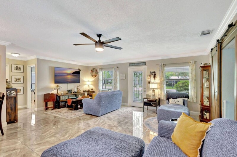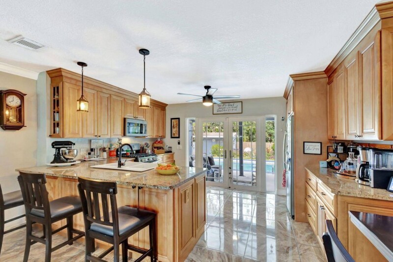 Welcome to this three-bedroom, three-bathroom CBS pool home is situated on a spacious 10,000 sq ft lot. Tucked away on a dead-end street, this property offers great privacy. Completely remodeled in 2016, the home features a desirable split-bedroom floor plan, updated bathrooms, and updated kitchen equipped with natural gas appliances. Step outside to your own private oasis--an expansive fenced-in backyard with a sparkling pool, perfect for entertaining or simply relaxing in the Florida sunshine. With generous outdoor space, there's room to create the backyard of your dreams. Additional highlights include durable CBS construction, impact windows, open-living concept and ample storage. This move-in ready ranch home truly has it all! Hip and artsy downtown Lake Worth Beach and its sidewalk.