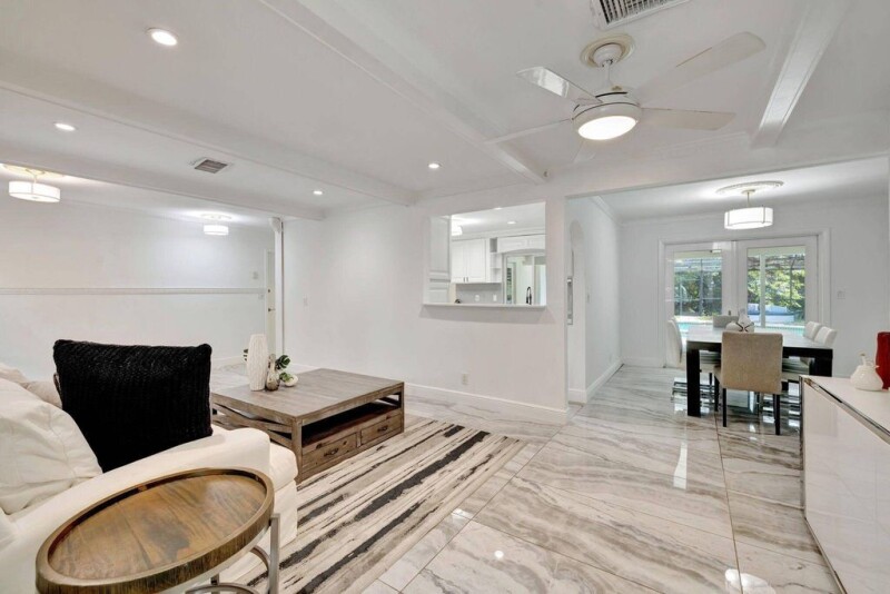 Solid CBS construction, impact glass, marble floors. Brand new roof, A/C, water heater, appliances, fresh paint inside and out, pool resurfaced, all 2025! Expand your living area to the outdoors on the huge lanai and 1800+ sq/ft screened pool enclosure facing east which provides cooler morning sun and shaded afternoons for entertaining and enjoyment! Exotic plants and trees abound on this oasis in town! Over 1/2 acre of tropical paradise east of 95! No HOA and No restrictions! Bring your trucks, boats, RV, toys, pets! Located just north of Wilton Manors. Relax to the sound of the babbling brook North Fork Middle River which is the waterfront lot line of the property! Fitted stone walk path along the river. 55x12 concrete pad on the north side of house. Secret neighborhood 3 min to I-95!.