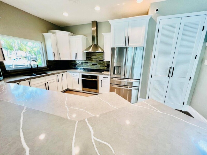 BOATER'S PARADISE FOUND IN LIGHTHOUSE POINT! PRIVATE DOCK with 17,000 pound elevator lift, water, electricity & light, that can accommodate up to 60ft boat with approximately 80ft of water frontage. COMPLETE IMPACT GLASS & SLIDERS. TOP OF THE LINE GE APPLIANCES. NO HOA. Overlooking wide canal is this 2 story Oasis updated in 2022 with wall to wall LUXURY VINYL FLOORING, Quartz countertops, Light fixtures & hardware, painted entire inside & outside. The screened in covered patio is equipped with Pool/Spa with heater & chiller. HOME SWEET HOME AWAITS!!!!.