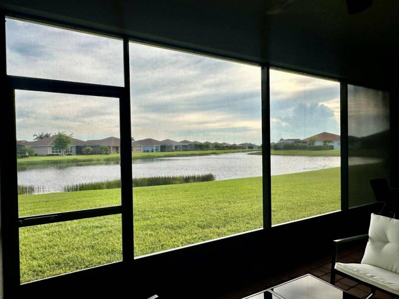 Welcome to this exceptional lakefront oasis nestled within the highly sought-after 55+ community of Vitalia at Tradition. This stunning residence features 3 bedrooms + den, including 2 master suites, and 3 full bathrooms, blending sophistication with comfort. Upon entry, you are greeted by tile flooring that spans the main living areas, enhancing the home's spacious feel and offering effortless upkeep. Complete impact glass storm protection ensures safety and tranquility in all seasons, allowing you to relax and enjoy the serene lake views. The heart of this home is its expansive and open floor plan, thoughtfully designed for both relaxation and entertainment. A formal dining area sets the stage for memorable meals with loved ones, while large windows flood the space with natural light.