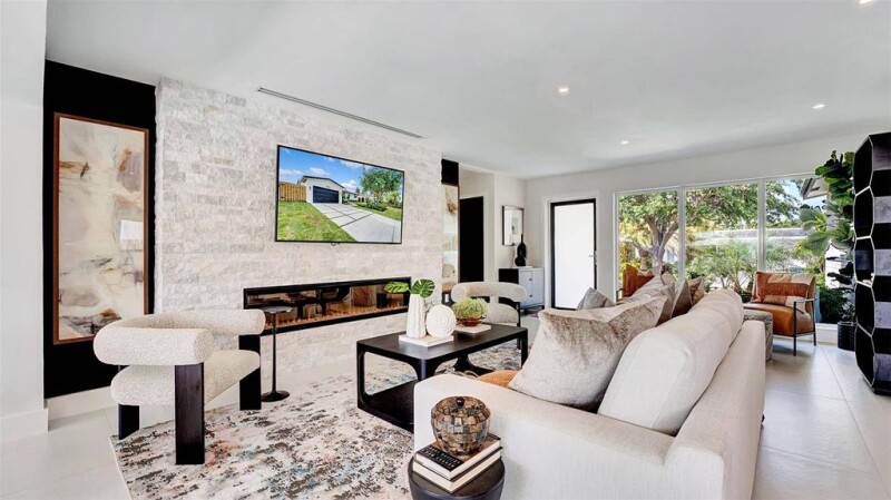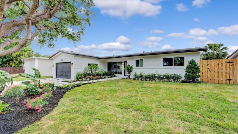 Completed in 2025, the “to-the-studs” transformation of this waterfront mid-century preserved its architectural integrity. New roof and impact glass throughout. Brand new heated black gunite pool. All-new HVAC, ducting, electrical and plumbing systems. Open living and dining areas. Functional and stylish kitchen outfitted with range, double wall ovens, 36” refrigerator, dishwasher and wine cooler. Two large ensuite king bedrooms and a third queen bedroom paired with a full hall bath. Insulted garage with epoxy flooring can fit two standard cars. New checkered concrete driveway complements the professionally landscaped lot with new fencing, irrigation & lighting. Come check out this beauty! Also 70’ frontage and location relative to fixed bridges allows for large boat to be kept at home.