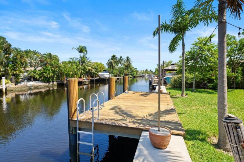 Gorgeous ocean access home offers tranquil water & pool views. Meticulously maintained & sits on a waterfront lot boasting a new 2022 metal roof & impact windows, brand new AC, w/an open split flr. plan & captures the essence of So. Florida’s luxurious lifestyle. A mix of superb finishes define the sophisticated motif. Sunlit liv. spaces w/expansive windows & glass doors open to the backyard oasis with travertine marble lanai, tranquil views of the heated pool & 70' waterfrontage for a seamless visual transition from interior to exterior spaces. Kitchen w/ Quartz, SS appls., ie a chef’s gas stove, wine frig. Private primary suite w/spa-like bath. Additional features:Porcelain flrs, remodeled bths, bonus rm/laund., tankless WH, pool heater, updated seawall & dock, & propane gas tank.