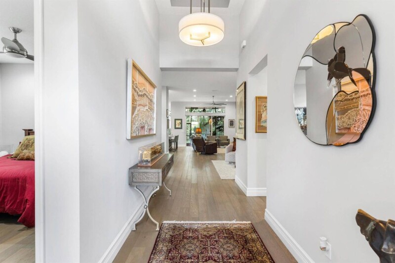 This beautifully appointed 3 bedroom+den Gibralter model sits on a lushly landscaped private lot backing south. The home has an open plan (wall down between family room & dining room) and features impact windows, wood floors throughout, outfitted closets, LED hi-hats, designer light fixtures & window treatments including plantation shutters and pirouettes, fans, upgraded baths and more! The gourmet kitchen has wood stacked cabinets with stainless steel trim and stainless steel drawers under the induction cooktop, granite countertops, tile backsplash and stainless steel appliances including a double wall oven. There is a large island with snack bar, separate breakfast nook & formal dining room. The master suite has a luxurious bath. The den features a built-in desk unit. Screened porch.