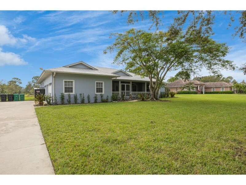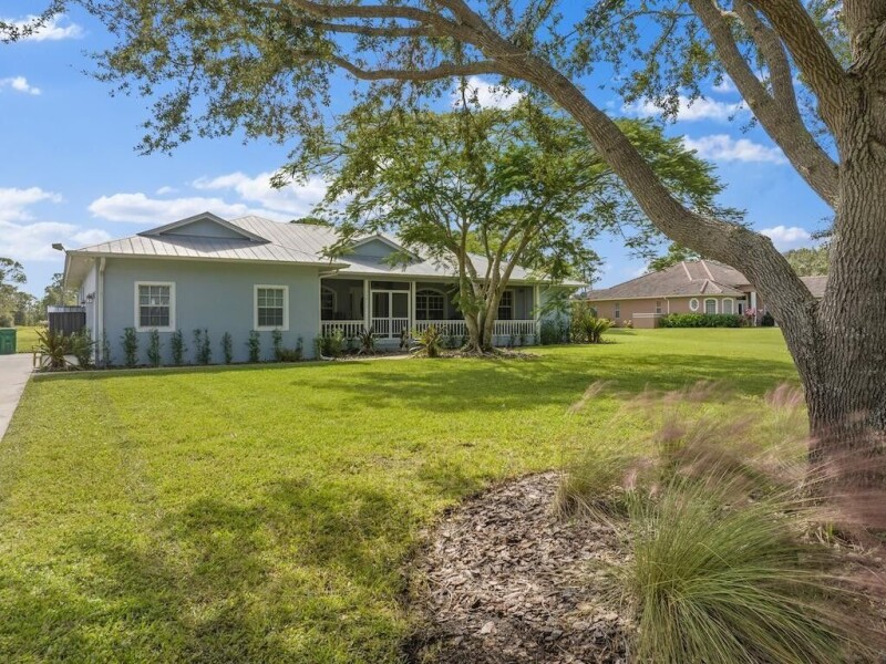 Welcome to this magnificently remodeled 4-bedroom + den/office, 3 full bathroom pool home on over an acre of land in the hidden gem neighborhood of Pine Hollow! This move-in ready home is located on a county-maintained paved road, offering easy access to the FL Turnpike or I-95. Plus, it's only a short drive from shopping, great local dining, world-class fishing, and idyllic local beaches. The concrete block home was recently remodeled from top to bottom, showcasing high-end materials throughout. Features include imported Italian plank tile, a stunning kitchen with a large central island made from a single slab of quartz with no seams, high-end custom appliances, and designer fixtures and ceiling fans.