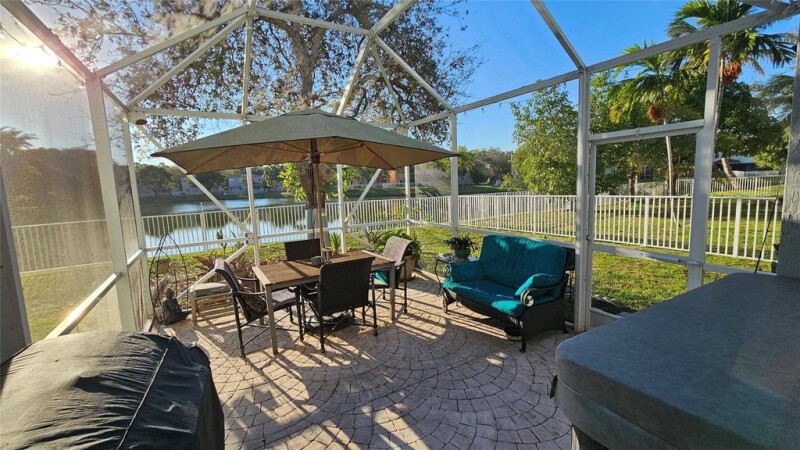 Stunning 4-Bedroom Lakefront Home in Walnut Creek Gated Community. This beautifully upgraded two-story lakefront home sits on an oversized lot and features 4 bedrooms, 3 baths, and impact windows/doors throughout. NEW A/C MARCH 2025. Enjoy your fenced backyard, complete with a screened patio, 8-person hot tub, and fire pit. Inside, the open-concept kitchen and dining area flow seamlessly. The first-floor bedroom with a full bath is perfect for guests. Upstairs, the oversized family room has a built-in office and balcony. The master suite boasts lake views, a walk-in closet, and an upgraded en-suite bath. Amenities:Clubhouse, gym, pools, tennis, playground. HOA includes cable, HBO, Internet, security, lawn care. Minutes from top schools, Hard Rock, I-95, and Sawgrass Mills!.