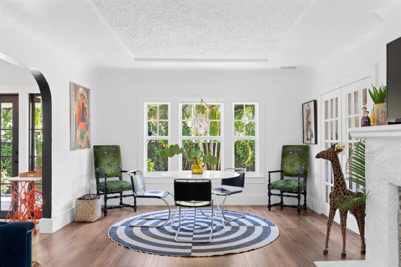 One of only two Dutch Colonial homes in College Park, this 1926 architectural gem, known as the Twin Sisters, is a rare and character-filled treasure in South Florida. Set on an expansive lot, this beautifully updated residence offers 4 bedrooms, 2 baths, plus a spacious den and inviting open living areas.Thoughtfully enhanced with modern conveniences while preserving its historic charm, the home features new flooring, an original fireplace, and an upstairs laundry. The full attic boasts ceiling heights tall enough for future expansion. Gas appliances, a new two-zone A/C system, and updated electrical ensure both comfort and efficiency.