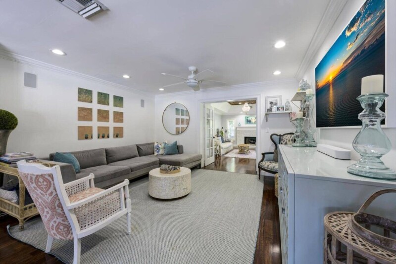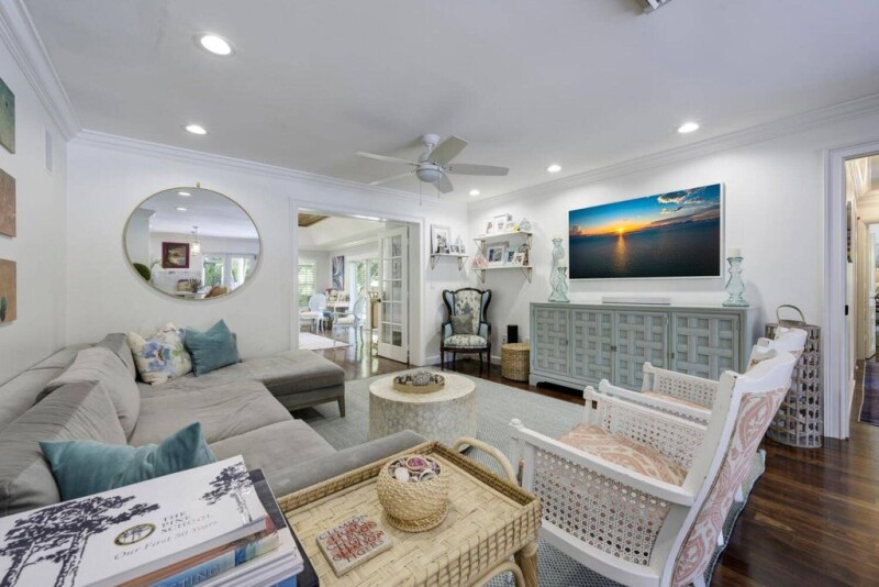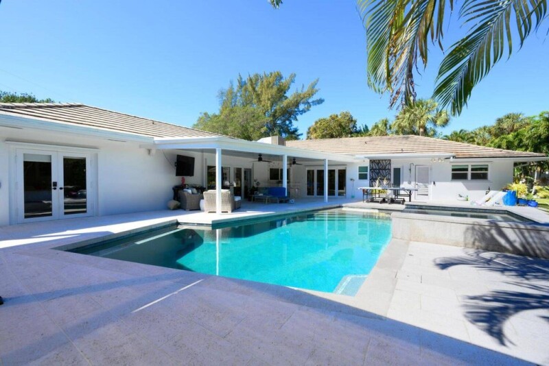 RARE WATERFRONT GEM IN PALM BEACH'S PREMIER NEIGHBORHOOD OF HIDDEN KEY! Tucked away in the exclusive, gated community of Hidden Key, this private waterfront retreat offers 0.4 acre of lush, tropical beauty. A true rarity, this home seamlessly blends elegance, comfort, and the best of waterfront living. Inside, a thoughtfully designed split floor plan features 4BD, private office, cozy family room, & an inviting living room with a custom fireplace & stunning Pecky Cypress ceiling. Designed for effortless indoor-outdoor living, every space flows beautifully to the outdoors. Step outside to your own Florida paradise covered dining area, sparkling pool & oversized patio all overlooking peaceful water views. The newly built dock accommodates a 28ft boat, jet ski & more as you head to the ocean.