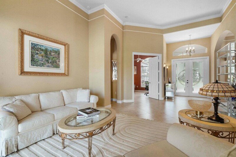 Nestled on a picturesque tree-lined street in The Preserve at Hammock Creek, this beautifully maintained 4 BR, 3 BA, 3 CG home offers elegance, comfort, and stunning golf course views. Perfectly positioned on the 2nd fairway of the prestigious Jack Nicklaus-designed course, providing breathtaking vistas and an unparalleled lifestyle. Built by its original owners with solid concrete block construction, 12' ceilings, crown molding, 5 3/4'' baseboards, and porcelain tile in the main living areas. The bright, open layout includes formal living and dining rooms, along with a spacious family room and kitchen--ideal for entertaining. Enjoy abundant storage with three pantries. **BRAND NEW flat tile roof was installed on March 23, 2025! Plenty of space to add a pool and create your private retreat.