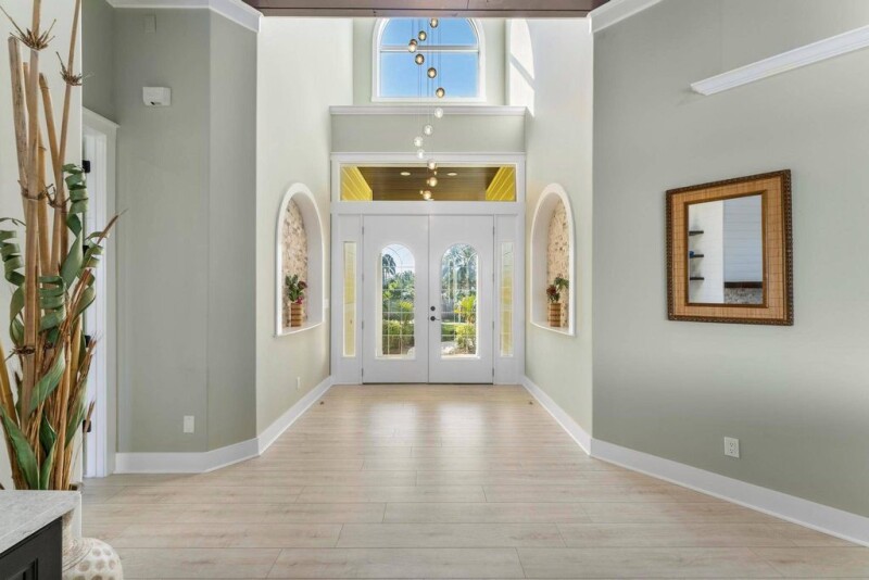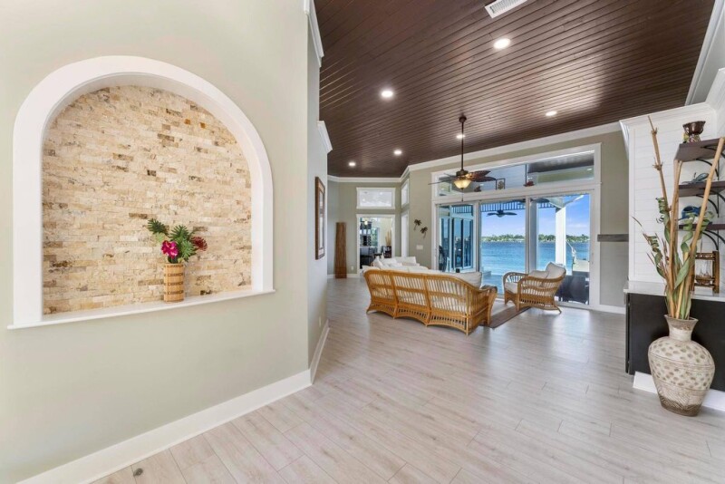This waterfront property showcases an owner's exceptional attention to detail at every turn. With breathtaking water views from every angle, the craftsmanship is evident in features such as lighted molding and tongue-and-groove ceilings. The upgraded kitchen and bathrooms further enhance the home's appeal. The house includes two master suites: one on the lower level with exceptional views and another upstairs featuring a bird's-eye view, as well as a private patio. The harmonious flow of extensive woodwork and thoughtfully chosen color palette will impress even the most discerning designers. The extended patio, complete with an outdoor kitchen, serves as the ultimate destination for family gatherings, seamlessly connecting to the kitchen and family room for easy entertaining.