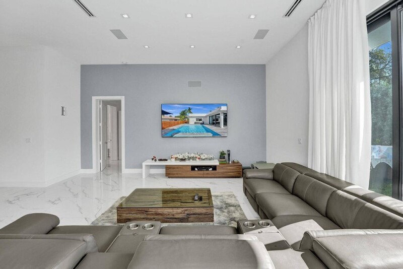 Newly Constructed Home Finished in August 2022. This home sizzles with its modern smart home design located 5 minutes from the all new Pompano beachfront entertainment & restaurant district. Everything you would expect in a new build featuring spacious 12 foot ceilings, oversized impact windows and doors, grand entryway, sparkling polished large tiled porcelain floors, custom chefs kitchen with pantry, 4 bdrm,3.5 bath. Enjoy a massive master suite with custom closets & luxurious bath. Top finishes throughout the home, professionally landscaped featuring a resort like backyard with pool, Entertain your friends & family with your outdoor BBQ kitchen. Generous double garage for two cars, storage, and a large driveway. New construction favors best insurance rates and energy savings.